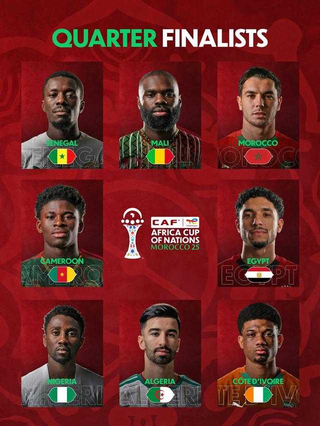 非洲杯八强对阵为:马里队对阵塞内加尔队;埃及队对阵科特迪瓦队;阿尔及利亚队对阵尼日利亚队;喀麦隆队对阵摩洛哥队。